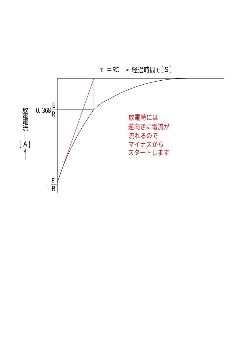 上記図より、時刻t=0sの時の電流i[A]は-E/R[A]となっています。